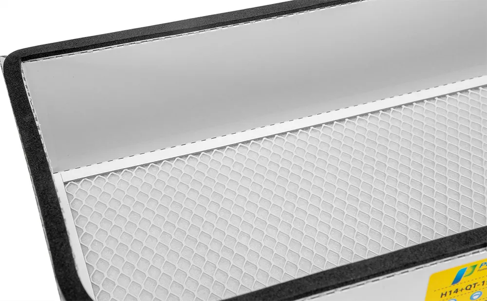 - Wyjątkowa Skuteczność Filtracji: Filtr HEPA H14 usuwa aż 99,99% cząstek o wielkości ≥ 0,3 mikrona, co sprawia, że powietrze w miejscu pracy jest wolne od pyłu, dymu i innych drobnych zanieczyszczeń.