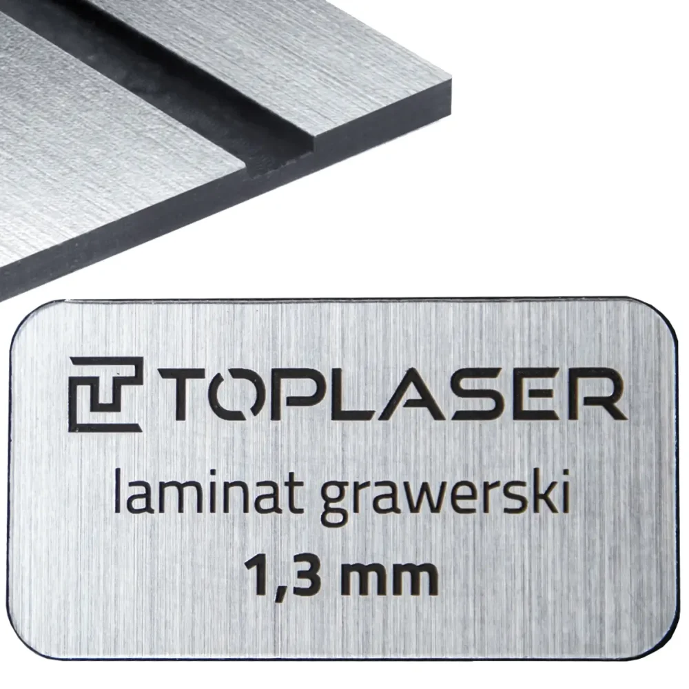 Potrzebujesz materiału, który doda Twoim projektom prestiżu i zapewni wyrazisty grawer? Szczotkowane srebro/czarny laminat grawerski 1,3 mm (ABS), kolor 854 to dwuwarstwowa płyta stworzona do laserowego znakowania. Metaliczna, szczotkowana powierzchnia w kolorze srebra kryje czarny rdzeń — podczas grawerowania laser usuwa cienką warstwę wierzchnią, odsłaniając ciemny spód. Dzięki temu powstaje czytelny, estetyczny i trwały grawer, gotowy do montażu bez dodatkowego wykańczania. Materiał przeznaczony jest wyłącznie do zastosowań wewnętrznych.