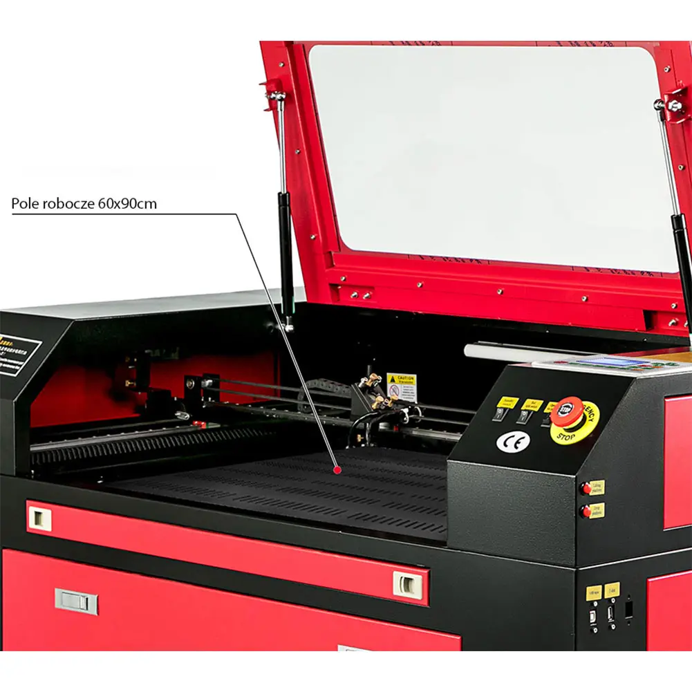nUrządzenie zostało wyposażone w cyfrowy sterownik Ruida, który funkcjonalnością deklasuje proste systemy sterujące laserami CO2. Dzięki kontrolerowi oprócz tradycyjnej obsługi za pomocą PC, mamy możliwość podglądu projektu na 3,5″ wyświetlaczu, gdzie wbudowane opcje pozwalają na pełną personalizację ustawień cięcia i grawerowania bez potrzeby modyfikacji projektu na komputerze. Oprogramowanie dołączone do plotera pozwala na zapis projektów na dysk zewnętrzny (pendrive USB) oraz aplikowanie utworzonych projektów bezpośrednio z dysku przez port USB znajdujący się w maszynie.