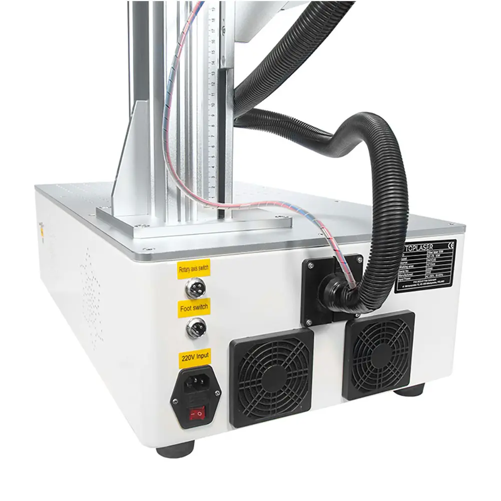 Niski pobór mocy sprawia, że urządzenie jest energooszczędne, a chłodzenie zapewniane przez wbudowane wentylatory sprawia, że praca jest stabilna i niezawodna. Regulowana wysokość lasera za pomocą pokrętła (0-50cm) pozwala dostosować się do różnych materiałów. Istnieje również możliwość rozszerzenia zestawu o przystawkę obrotową, co dodatkowo zwiększa funkcjonalność urządzenia.
