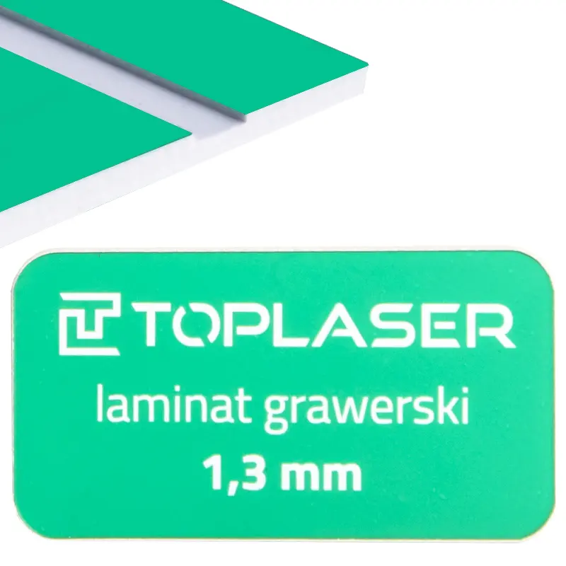 Laminat grawerski 1,3mm zielono/biały 802 formatka 300x200mm 30x20cm do obróbki laserowej